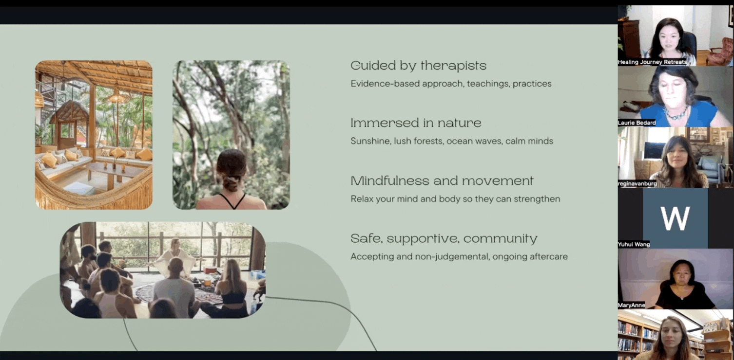 Hi everyone, welcome to today’s webinar on Why Mental Health Retreats, we’re so glad you’re here for the meet & greet! We’ll be sharing the story of why we started a mental health retreats business, what is a mental health retreat, if it’s right for you and how you may benefit from going on one.